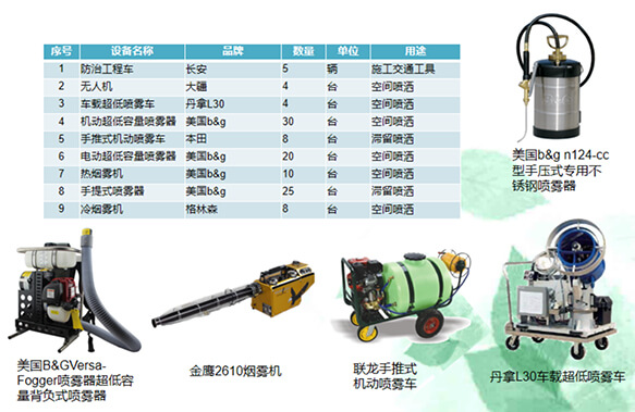 具有行業(yè)先進的設(shè)備,美國B&GVersa-Fogger噴霧器超低容量背負(fù)式噴霧器30臺、電動超低容量噴霧器20臺、熱煙霧機10臺、手提式噴霧器25臺......